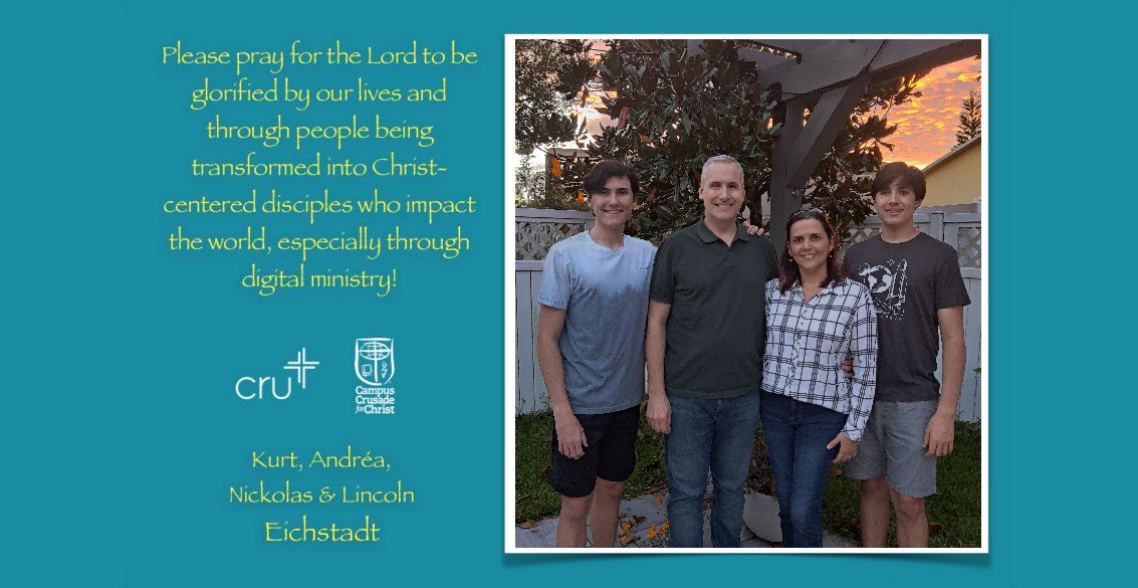 I have been on staff with Cru for over 25 years already, yet each year, Andrea and I become more and more excited about helping to fulfill the Great Commission by reaching the future leaders of our society's major institutions while they are still in the university, and reaching everyone who doesn't follow Christ through the digital spaces where they search for and connect with information and one another. We feel very privileged that the Lord has called us to be involved in full-time ministry and we know that it is a great responsibility also.