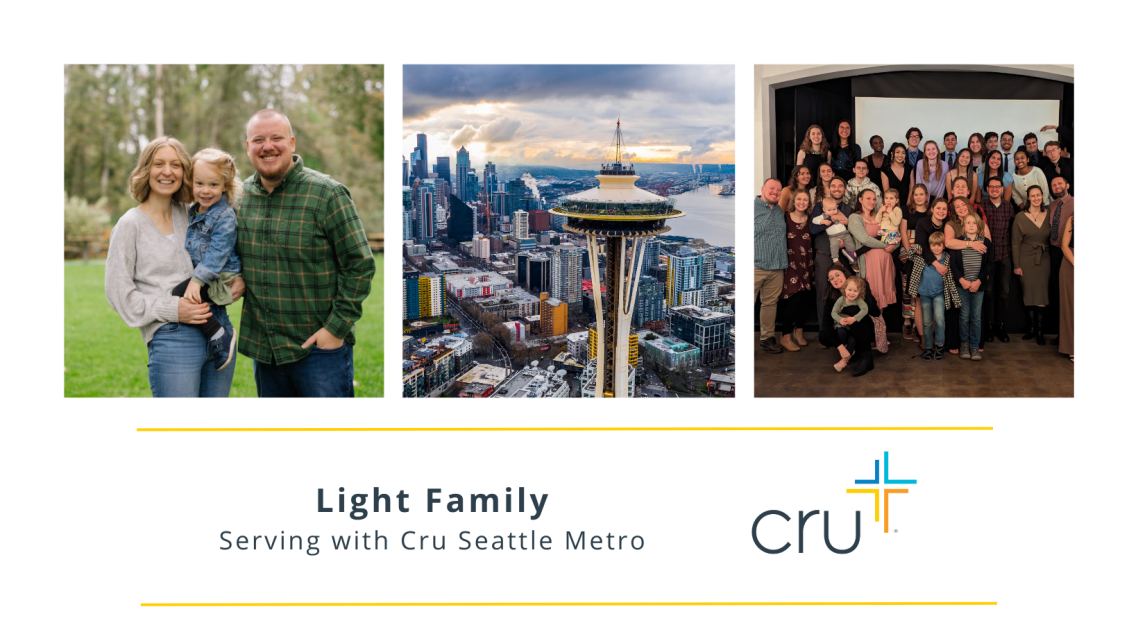 We are missionaries with the Christian missions organization called Cru (Campus Crusade for Christ International) who currently serve on college campuses in Seattle.