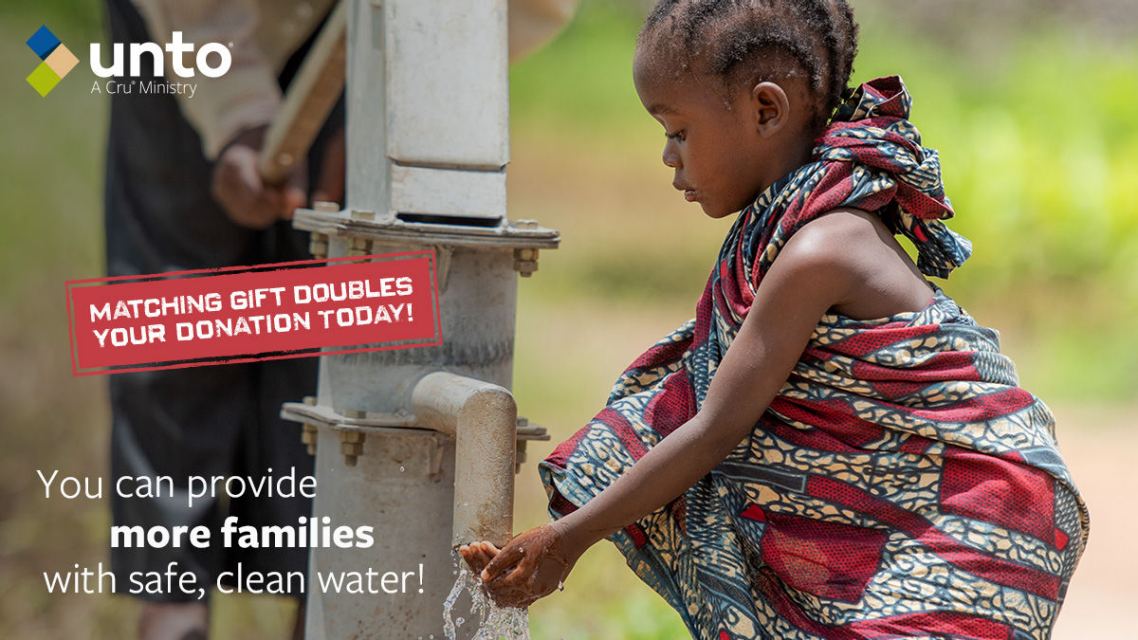 This year Unto® is drilling 45 new clean water wells and repairing 70 wells in 14 countries. But funding is needed to complete these projects. Thanks to a generous matching gift, your support today will be DOUBLED up to $200,000.