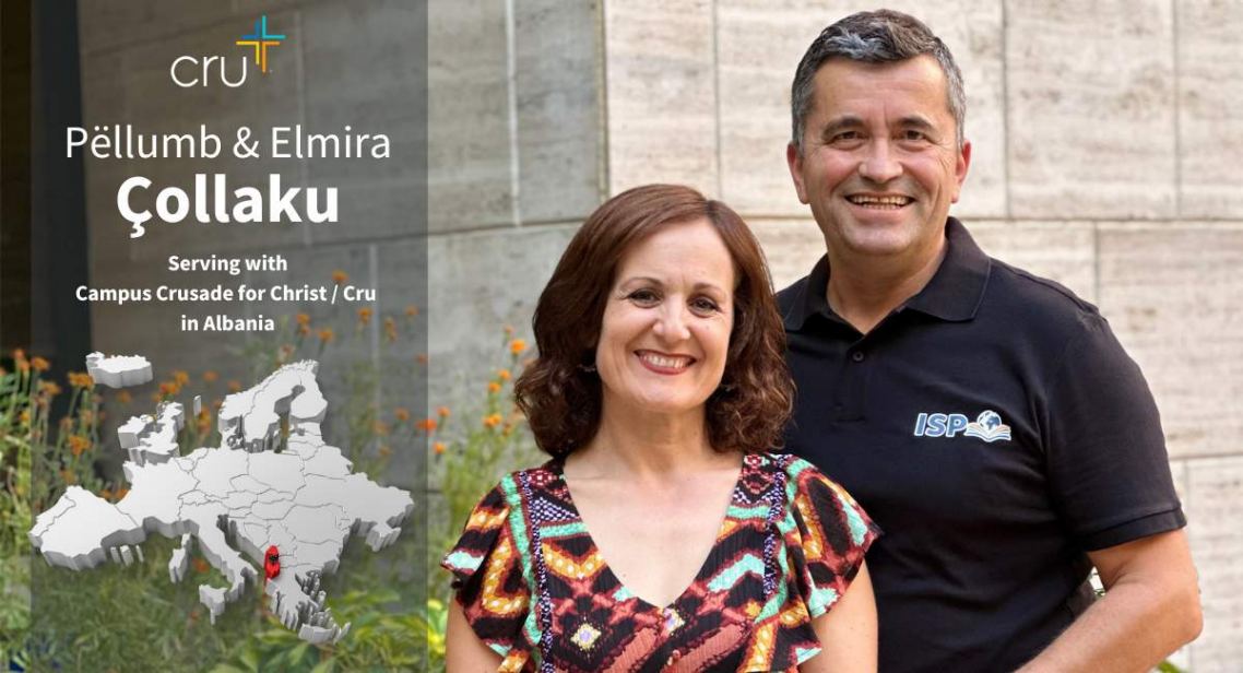 We are Pëllumb and Elmira Çollaku, serving Christ with Cru in Albania. Thank you for your interest to invest in God’s Kingdom through our ministry in Albania. We have huge opportunities to share the message of the Gospel among the Albanians. As a ministry, God has called Cru to a great task – helping fulfill the Great Commission in our generation. Over the years we have seen many lives being transformed, including our own, when the message of the Gospel was presented.